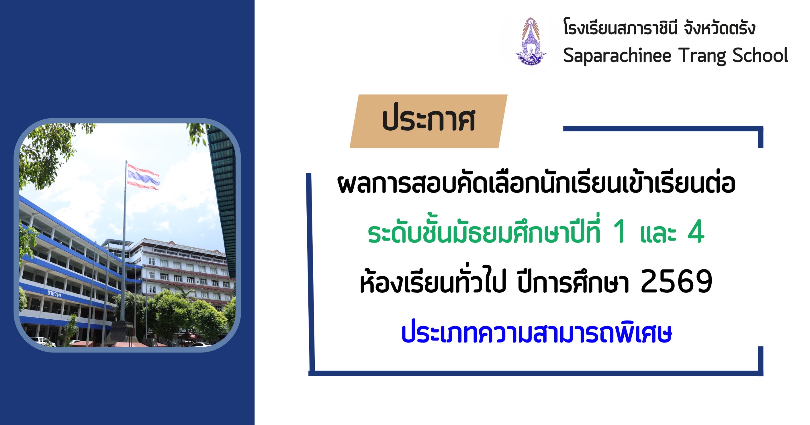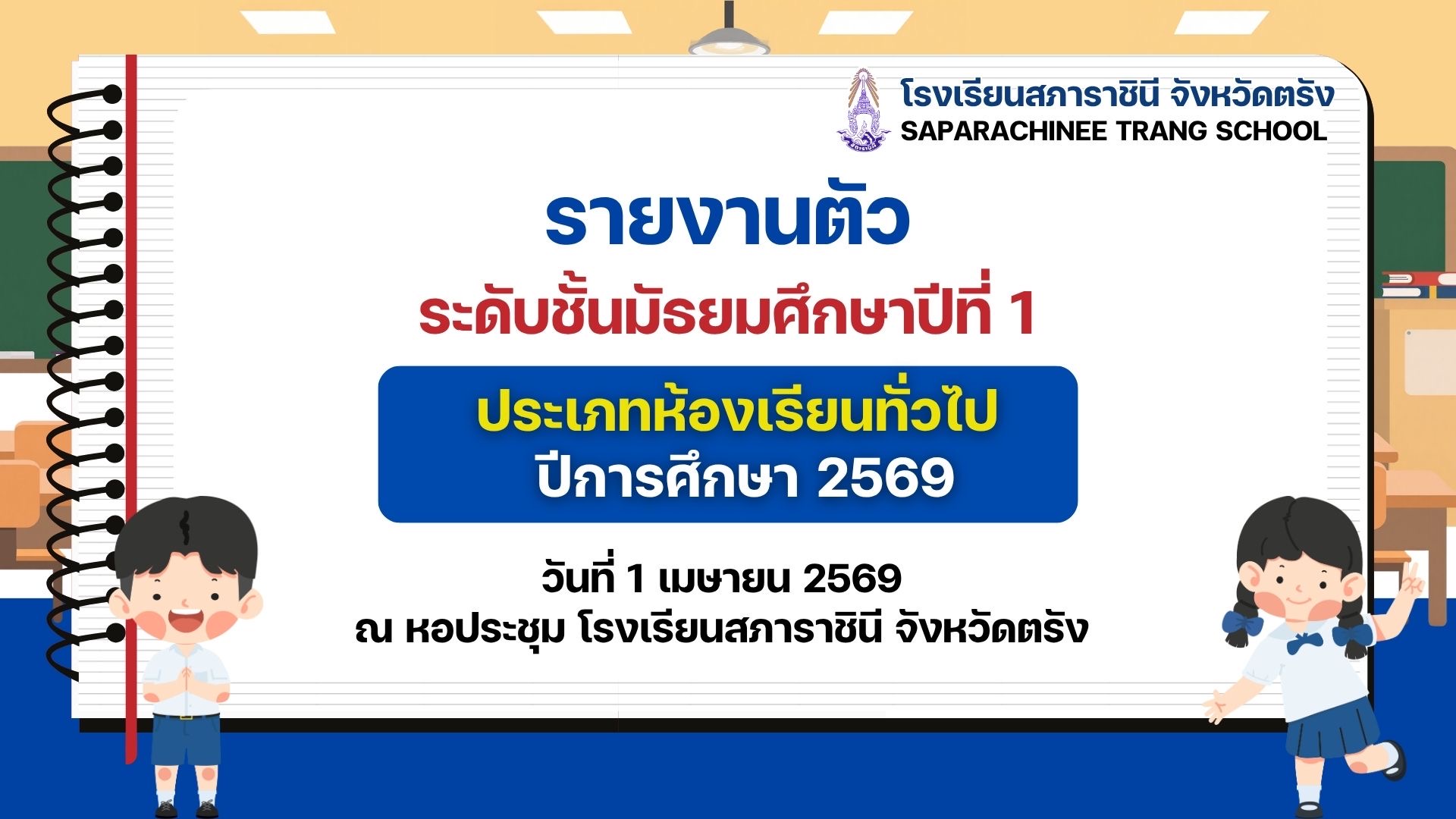 รับสมัครห้องเรียนทั่วไป ม.1 และ ม.4