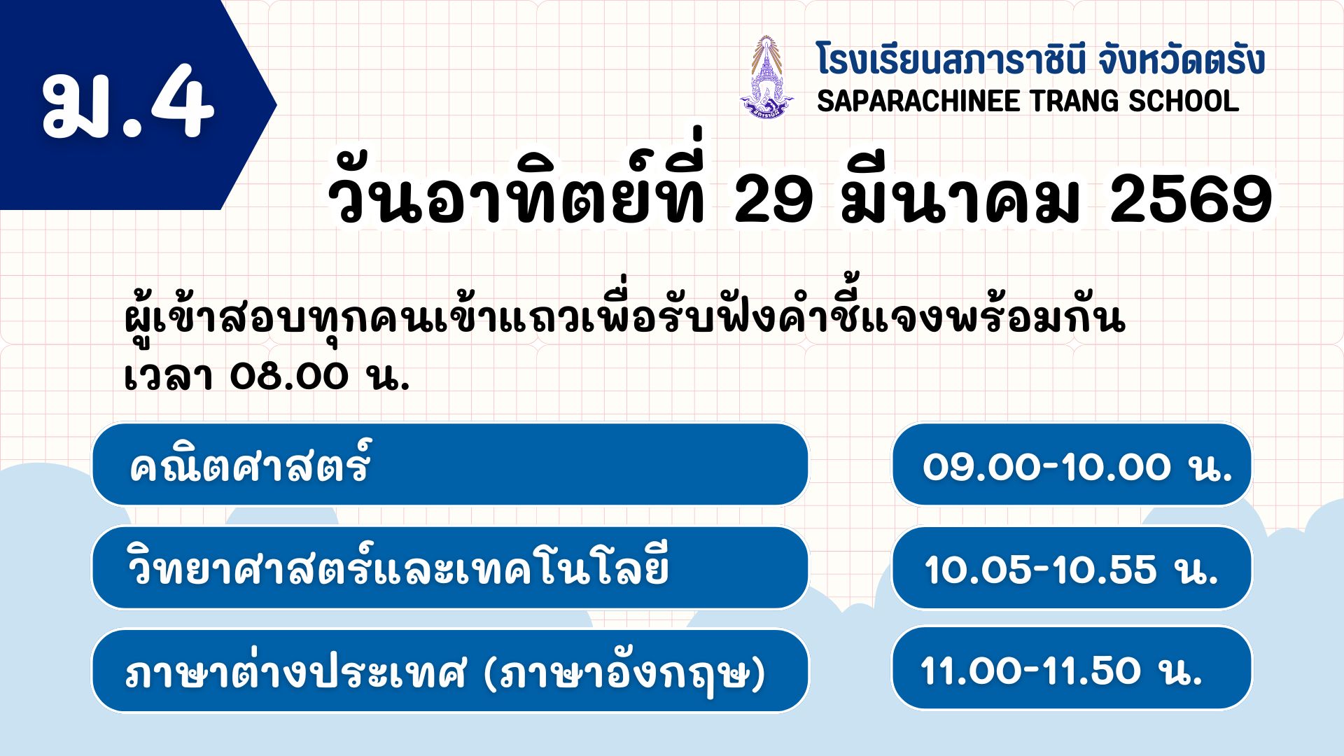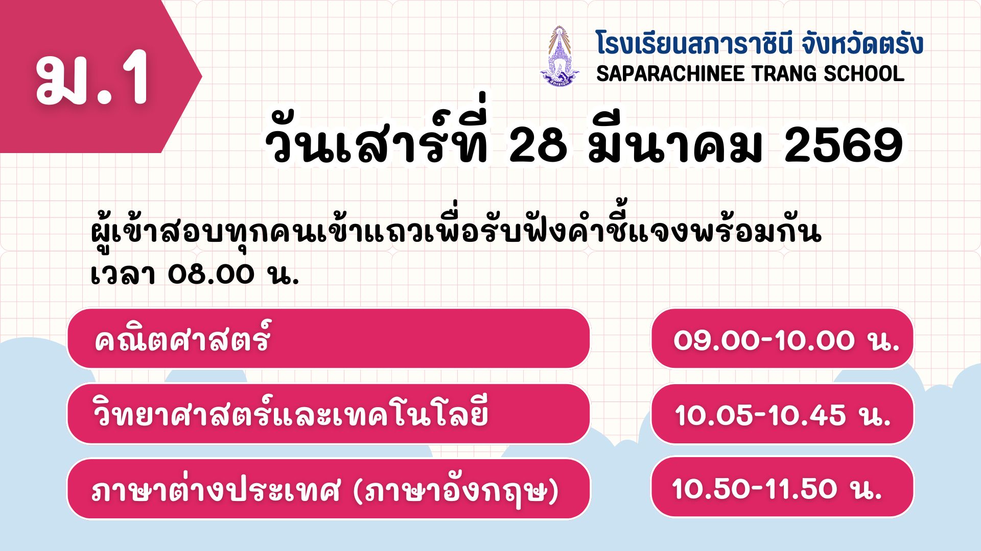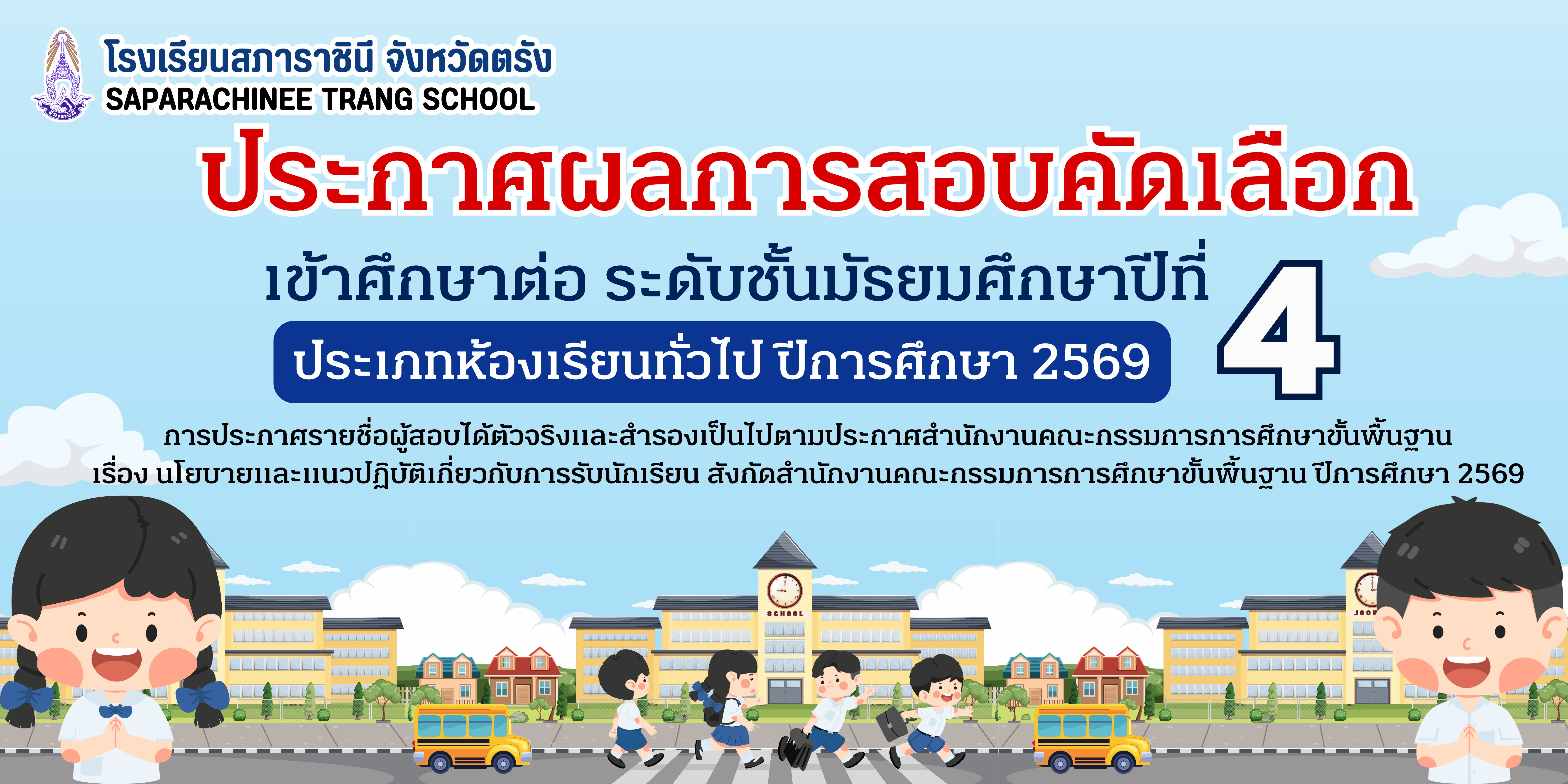 สอบคัดเลือกห้องเรียนทั่วไป ม.1 และ ม.4
