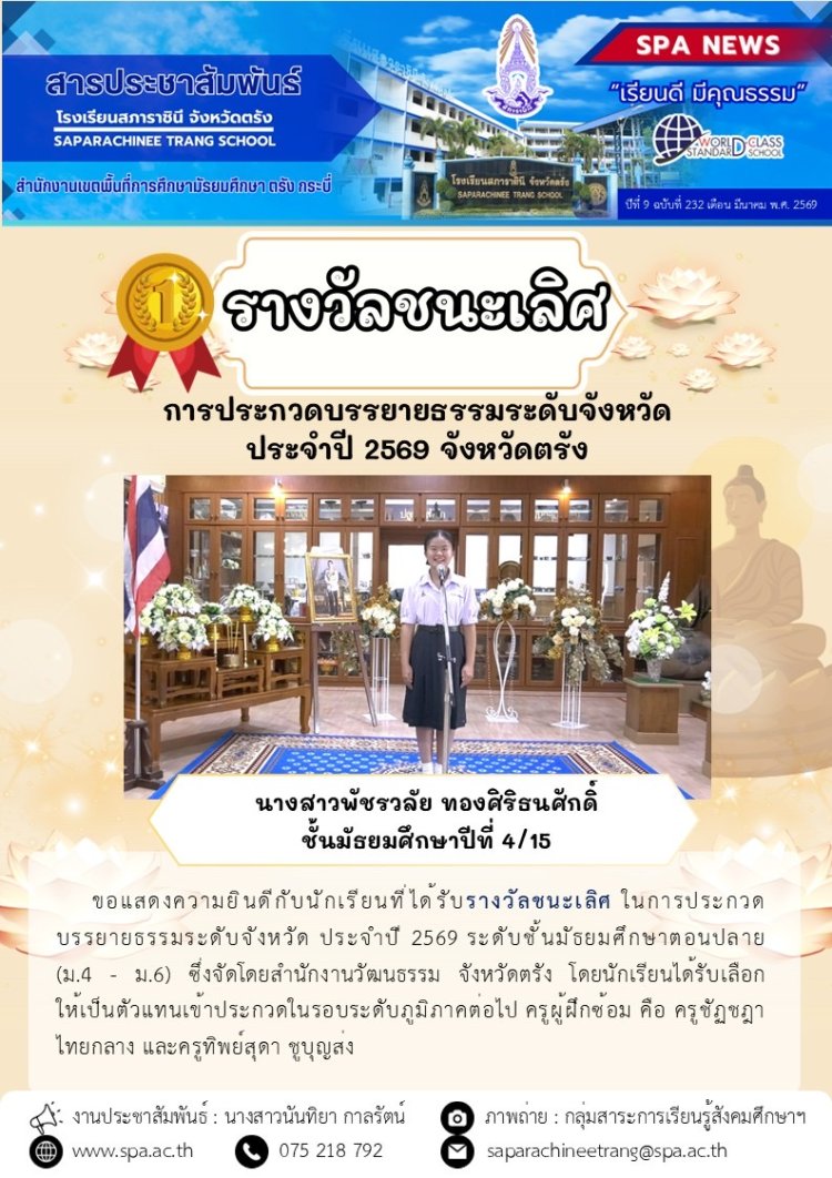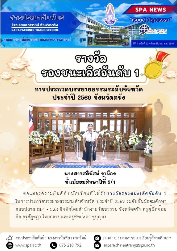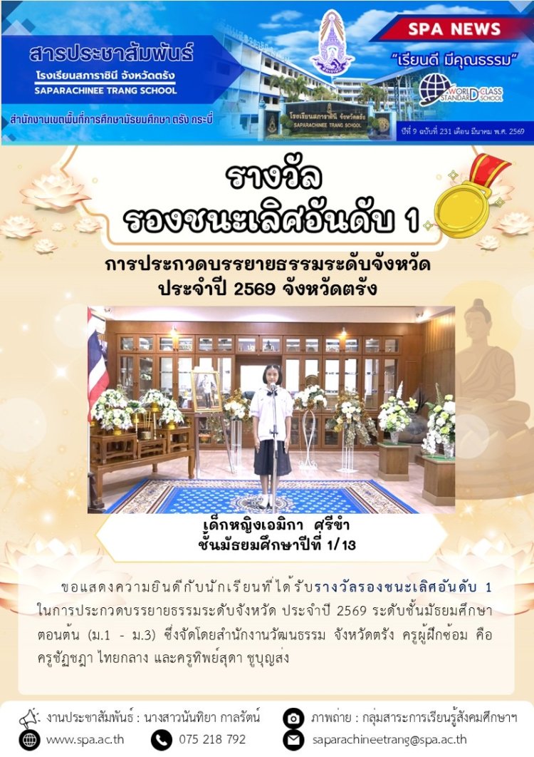 รายงานการประเมินโครงการส่งเสริมคุณธรรม จริยธรรม และค่านิยมที่พึ่งประสงค์ของนักเรียนโรงเรียนสภาราชินี จังหวัดตรัง