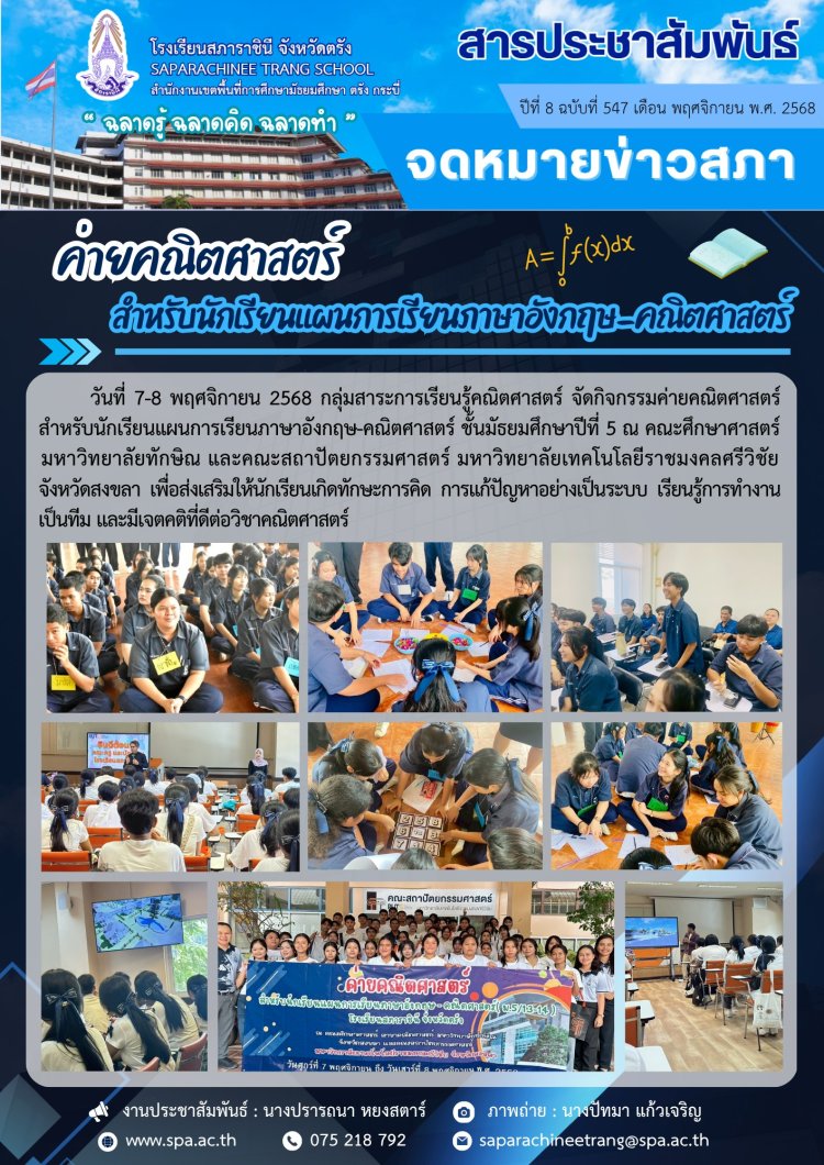 ค่ายคณิตศาสตร์แผนการเรียนภาษาอังกฤษ -คณิตศาสตร์สำหรับนักเรียน ม.5/13 และ ม.5/14