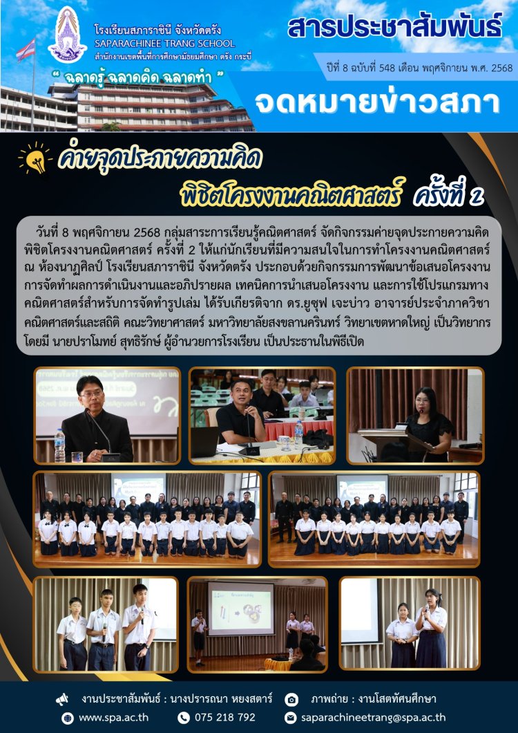 ค่ายจุดประกายความคิดพิชิตโครงงานคณิตศาสตร์ครั้งที่ 2 นักเรียน ม.2/1 (กลุ่มเลือก) และ ม.5/1 (กลุ่มเลือก)